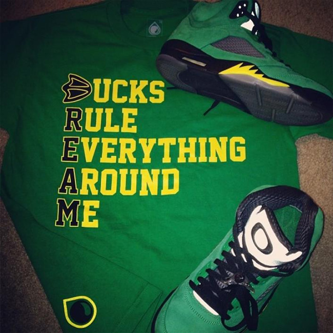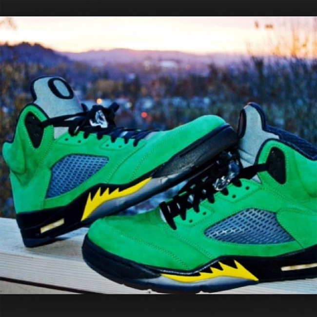 这次俄勒冈鸭子和 Air Jordan 5 的结合同样吸引了大量的关注度,这款已经热得满城风雨的 Air Jordan 5 "Oregon Ducks" PE 将在 2014 年 2 月 15 日 NBA 全明星周末正式市售,不过传言货量极小。