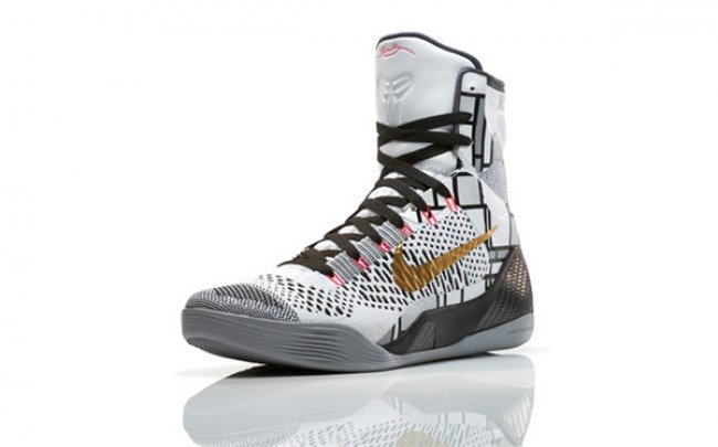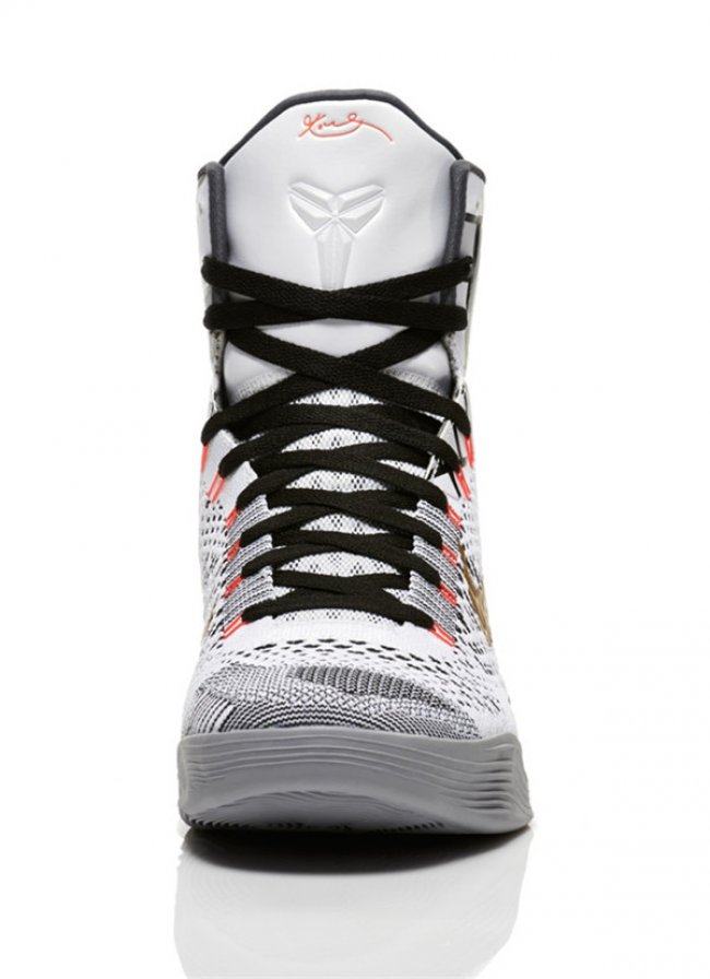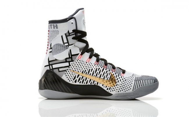 KOBE 9 ELITE是耐克第一双使用Flyknit技术的篮球鞋,用单股纱线织造出编织鞋面,颠覆了传统制鞋工艺。KOBE 9 ELITE GOLD的鞋面以白色为主,细节处穿插点缀着灰、黑、金三种颜色。设计师EricAvar匠心独具为科比打造了至今最瞩目的签名球鞋,通过Lunarlon泡棉,动态飞线技术和碳板的结合将创新发挥到极至。