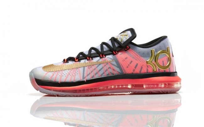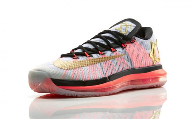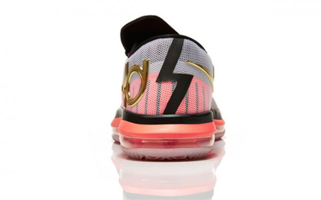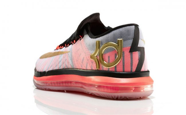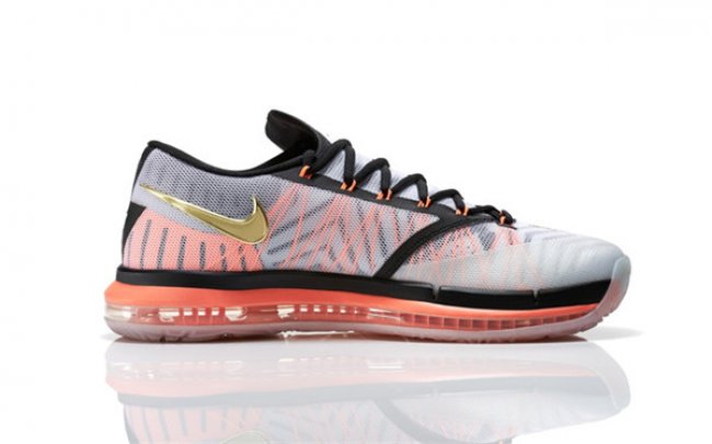 在这款全新的球鞋中,全掌可视的NikeZoom气垫单元贯穿整个中底,这是这项技术首次被运用于杜兰特的签名球鞋中。KD VI ELITEGOLD最大化的透气性和牢固度,使球鞋能够在运动中精准而自然地贴合足部,同时加入许多全新的细节设计,比如鞋舌上的“35-6”标识。球鞋以白色为主色调,并采用Kevlar®纤维强化飞线技术,为杜兰特这位得分王提供了最理想的锁定支撑。