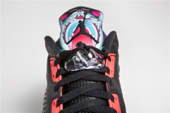JORDAN 风鸢系列包含了 SUPER.FLY 4 PO 和 AIR JORDAN 5 RETRO LOW 两个鞋款,分别代表着 JORDAN 品牌的最新科技产品以及经典之作。SUPER.FLY 4 PO 采用了 JORDAN 品牌最新一代的 FLIGHTSPEED 技术,利用每一步的能量返还,为爆发性起跳蓄势;愈合式缓震系统则为球鞋提供了超强的响应性和舒适性;侧面包裹的 TPU 为关键的快速横向切入提供支撑与保护; 柔韧的纺织鞋面结合透气网眼以及防护泡沫,保证了球鞋的灵活、轻质和耐磨;融入鞋身的风筝图案则为这双原本硬朗实战鞋款增添不少柔情,同时也是寓意着两者间的关联:同样质地轻盈,却又强韧。作为 AIR JORDAN 系列中的经典鞋款之一,风鸢系列中的 AIR JORDAN 5 RETRO LOW 的鞋舌、鞋跟以及中底侧面的标志性设计都被风筝图腾的印花填满了浓浓的中国味。