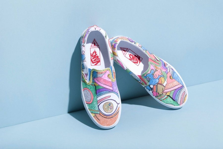 以 Vans 经典鞋型 Slip-On 为蓝本,别出心裁的采用手绘、刺绣、拼接、破坏等方式呈现。除此之外,双方还邀请来恶搞艺术家 Ava Nirui,发挥创意将作品提升至一个更高的趣味艺术层面,使原本低调简洁的一脚蹬造型,焕发出别具一格的独特的韵味。