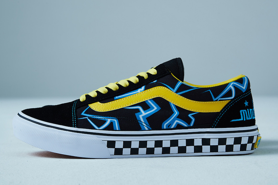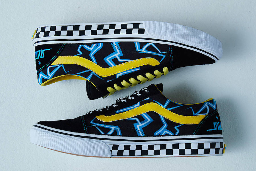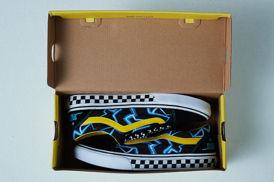 鞋款在经典的 Old Skool 基础上进行设计创作,鞋带、内衬和标志性的波浪线都以亮黄色点缀,中底和另一只的鞋带则加入黑白格元素,在后跟处加入蓝色刺绣的 mindseeker Logo 收尾,整体辨识度极高。