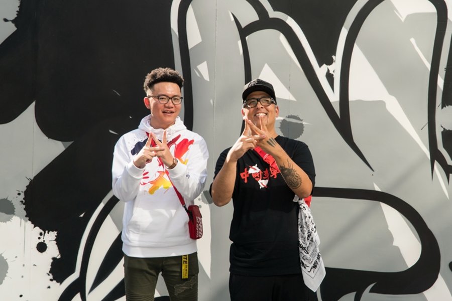 首先 OG SLICK 在互动体验空间墙壁上喷涂了自己的签名,并和孙明旭一同畅谈这次合作。