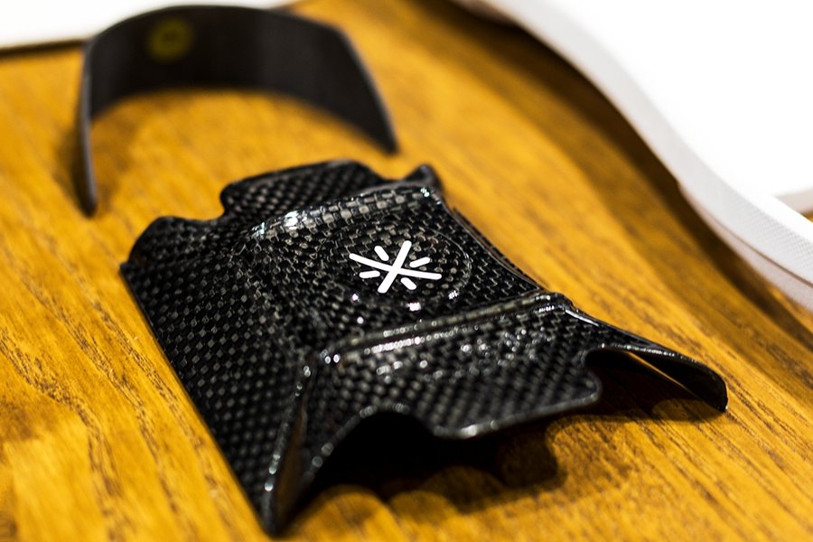 大底中央放置一块超大面积,带有立体加强筋的高强度碳板。后跟则放置了一条 U 型碳板,为足跟带来锁止效果,夹住双脚大幅提升稳定性。