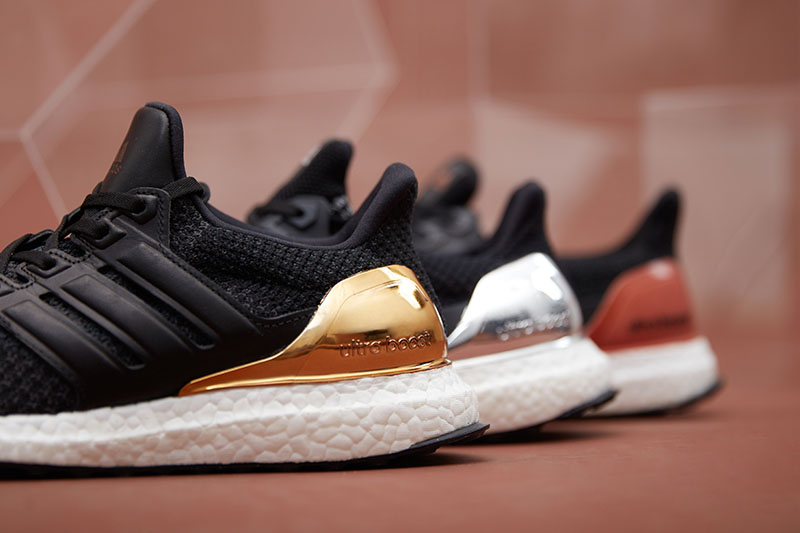 作为 adidas 为 2016 年里约奥运会期间所推出的限量套装,后跟特别采用金属质感诠释出奥运奖牌的既视感,也是与所有 UltraBOOST 家族成员的最大区别!
