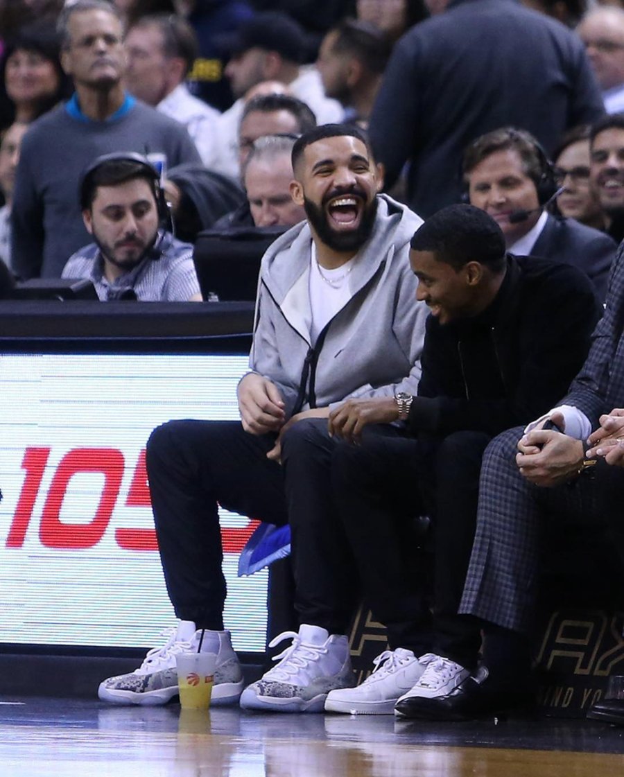 伴随着年底大魔王 Air Jordan 11 “Concord” 的正式回归,各路明星也都纷纷上脚 AJ11 以示致敬,与 Jordan Brand 重修旧好的 Drake 近日在赛场上脚了一双更为罕见的蟒纹版本!