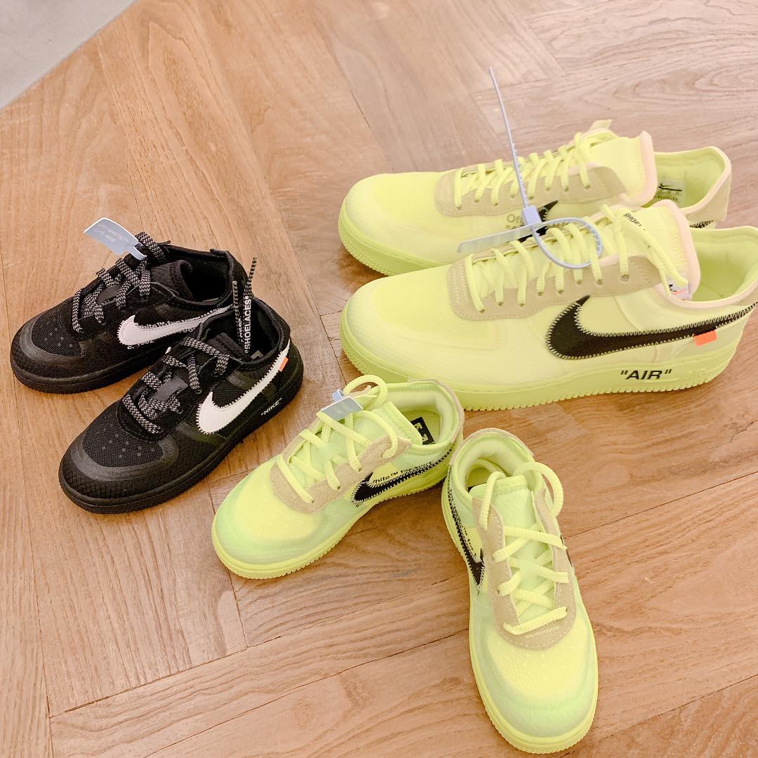 而陈冠希在很早之前就晒出了宝贝女儿 Alaia 抱着这双 OFF-WHITE x Air Force 1 童鞋的照片,看起来非常可爱。