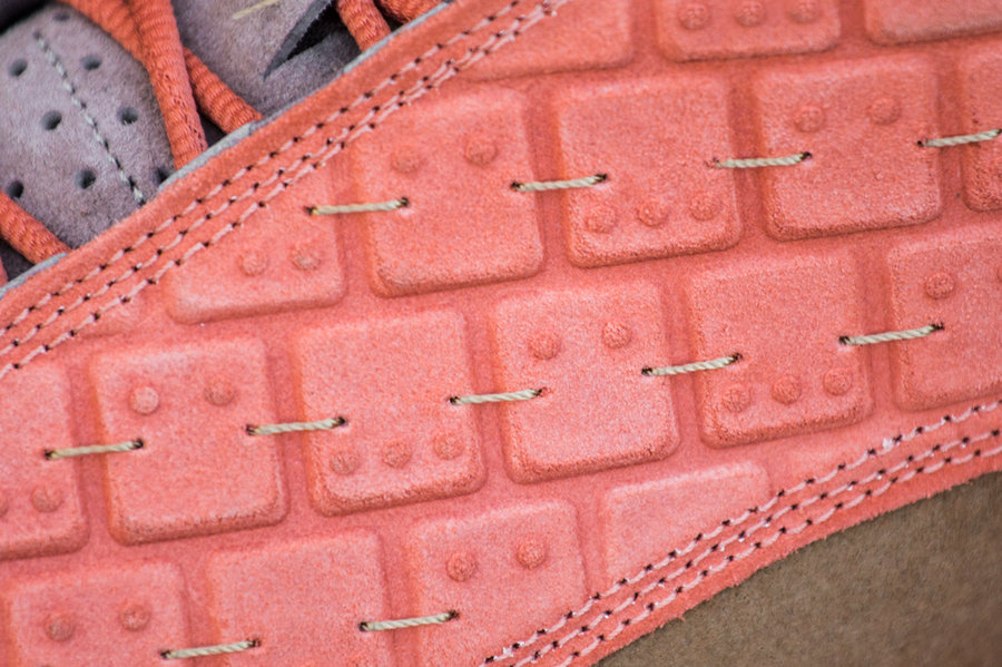 鞋款以陶土色、浅卡其与钱灰色麂皮材质打造鞋面,最大的亮点在于鞋面以格状纹理呈现。