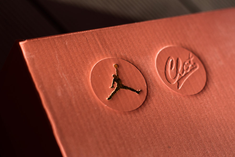 细节上,鞋舌与后跟处都分别点缀金色的 CLOT 与 Jumpman Logo。