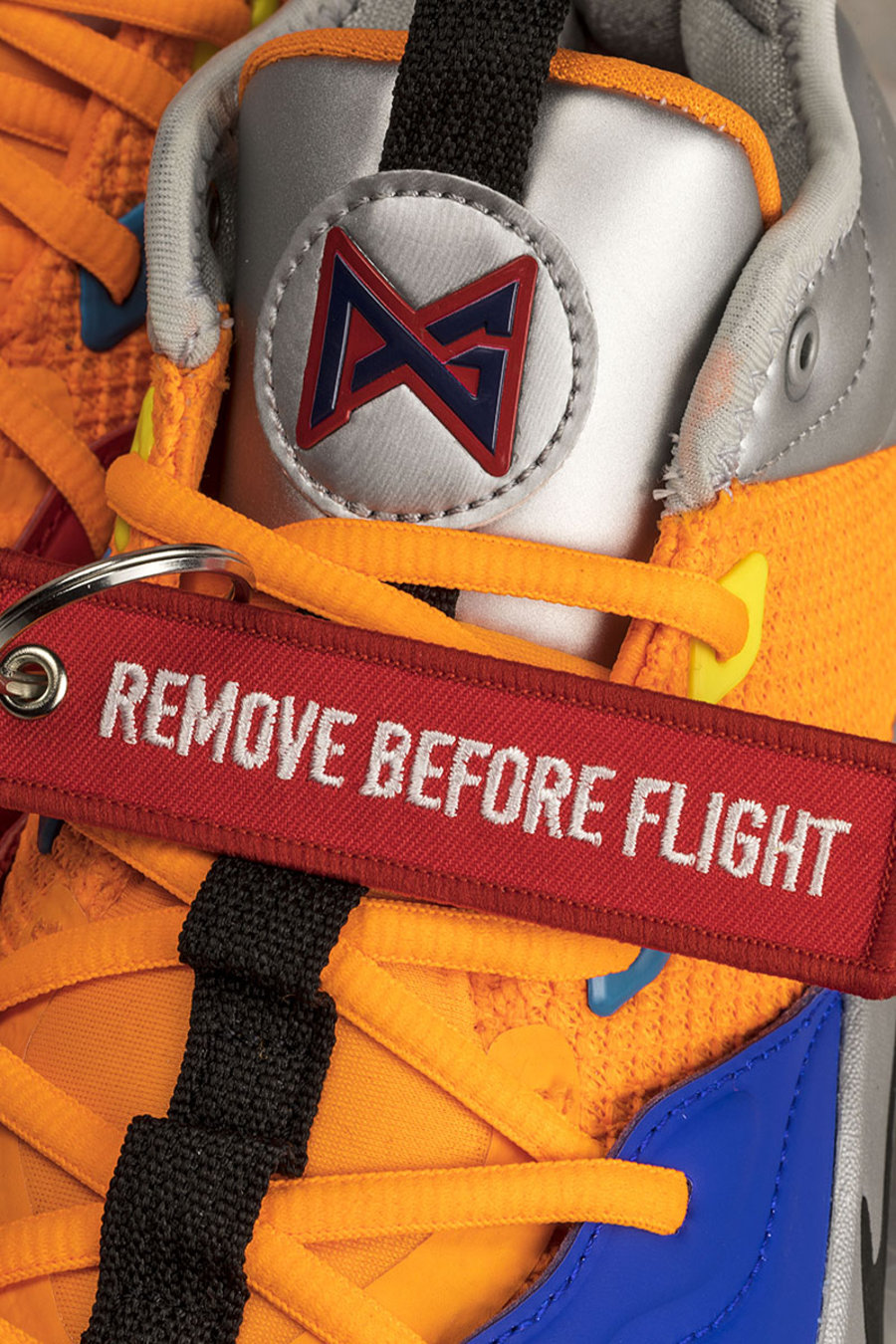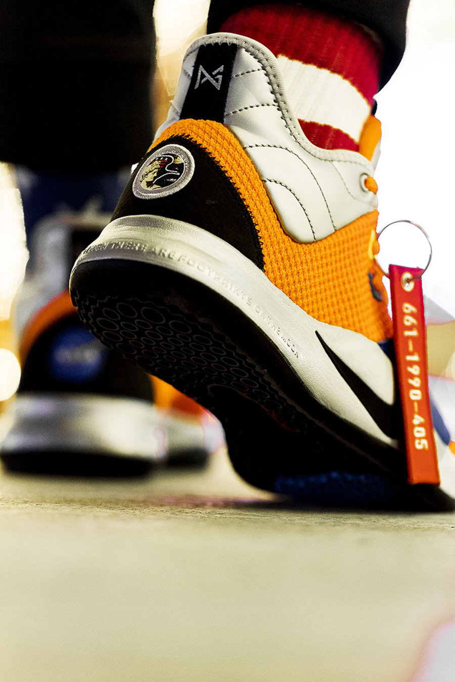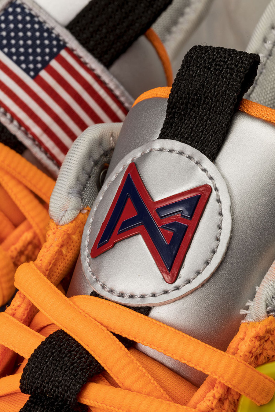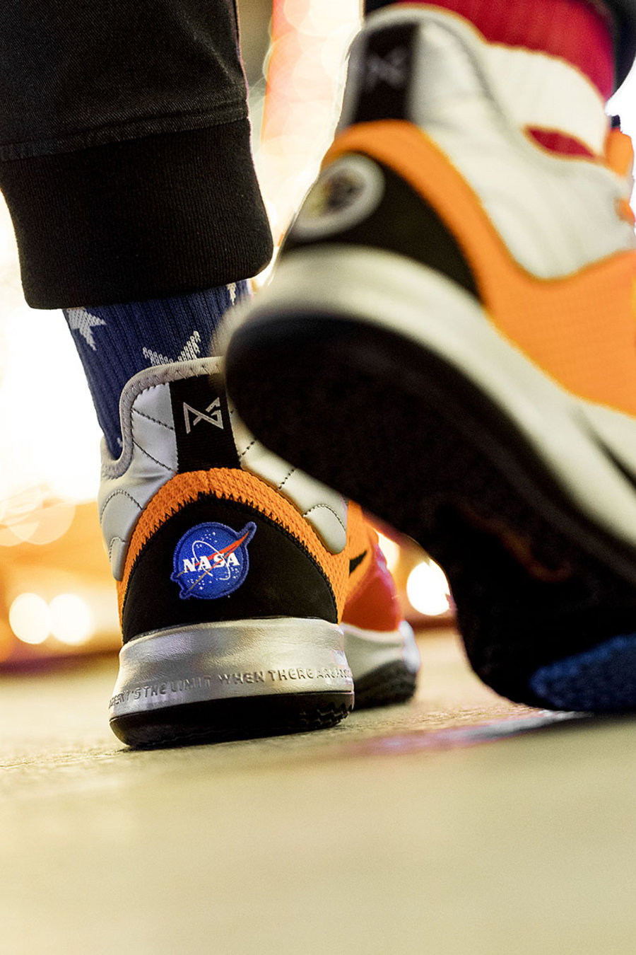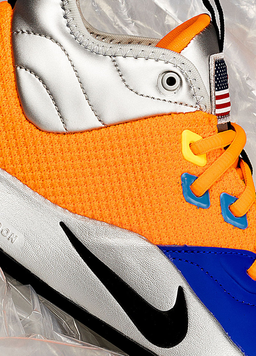 鞋舌分别采用美国国旗刺绣与 PG 个人 Logo 示人,后跟则是 NASA 刺绣与阿波罗登月计划的徽章!