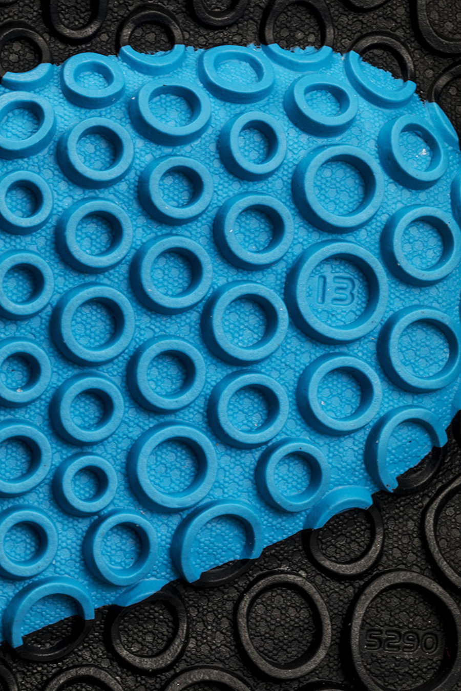 橡胶材质不算软,使劲按能略微形变,实战中抓地的防滑性值得期待。