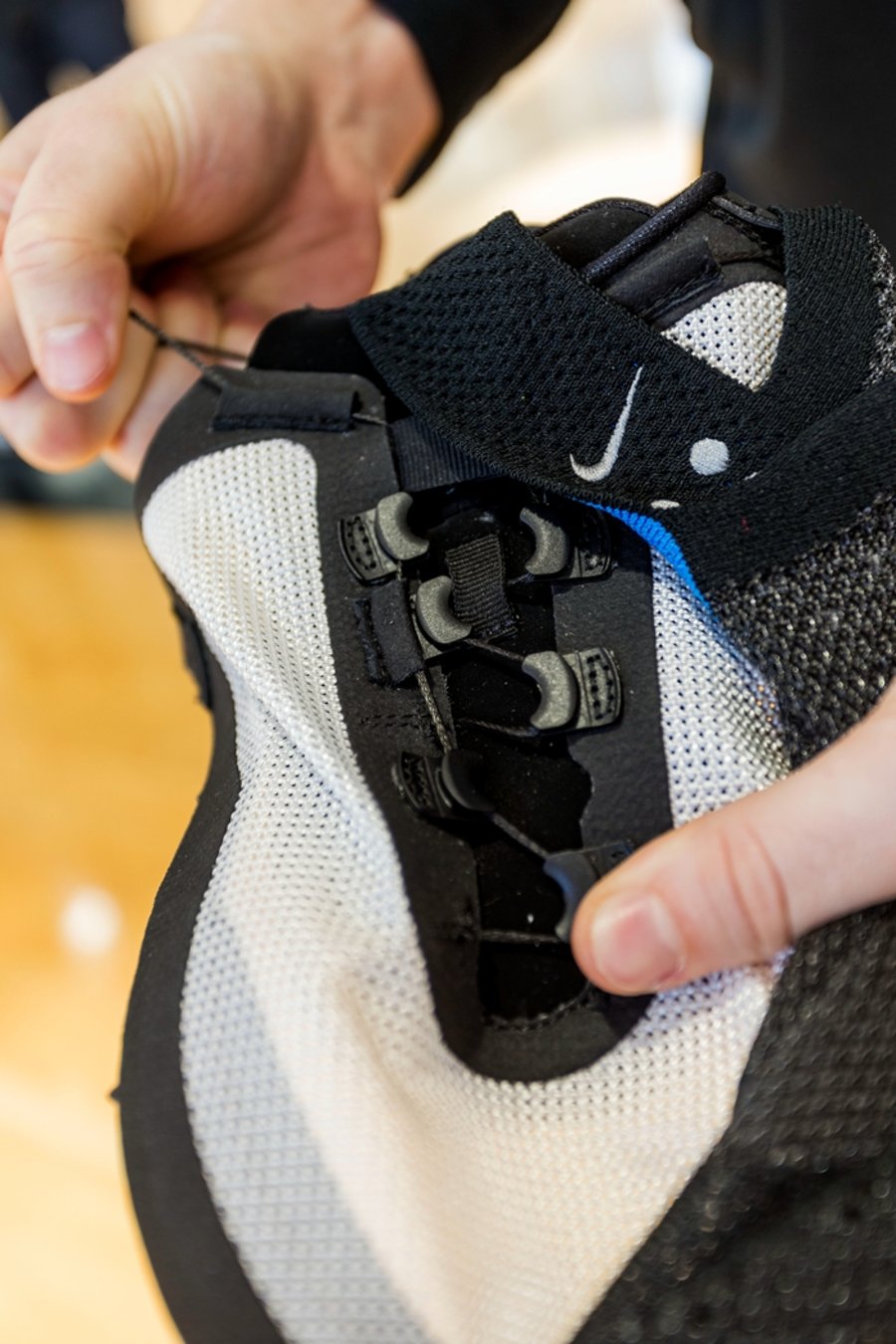 研发过程中,经常有一些 NBA 、WNBA 领域的精英球员前往俄勒冈的耐克总部,穿着 Nike Adapt BB 参加一系列训练和 5v5 全场比赛,通过获得数据再加以改进,最终完成。