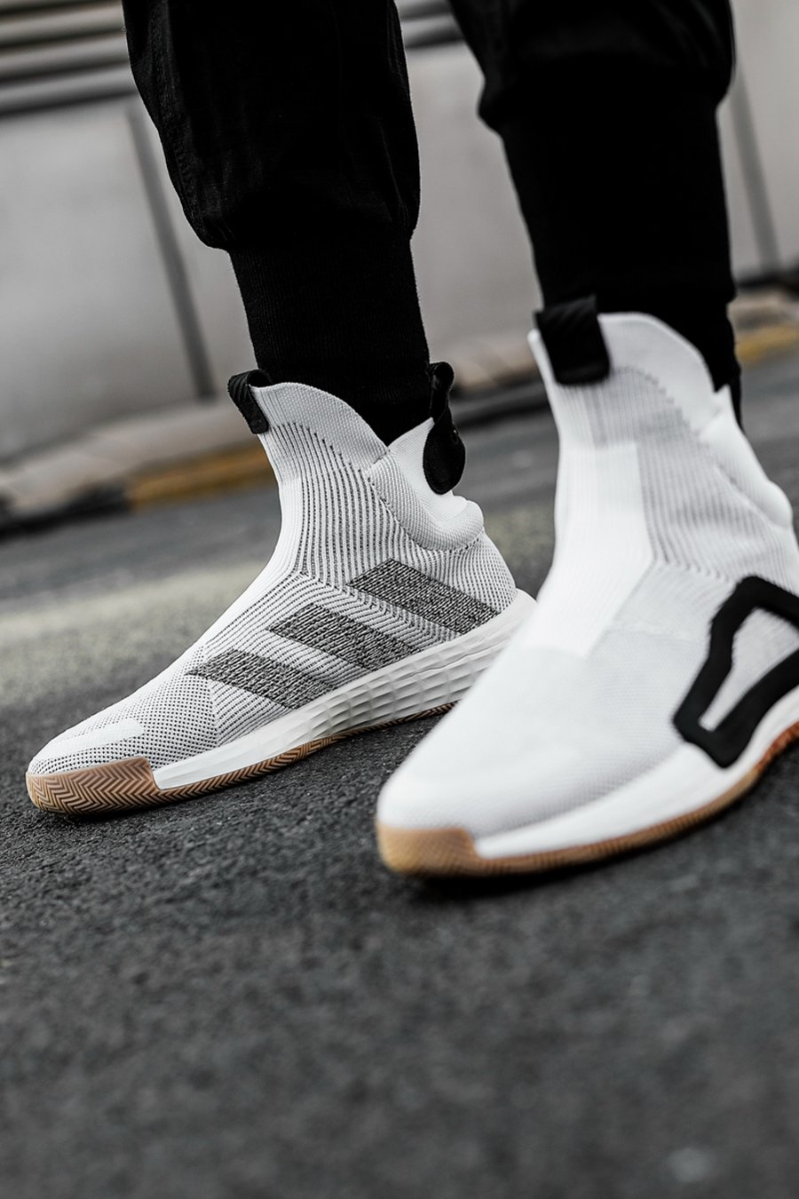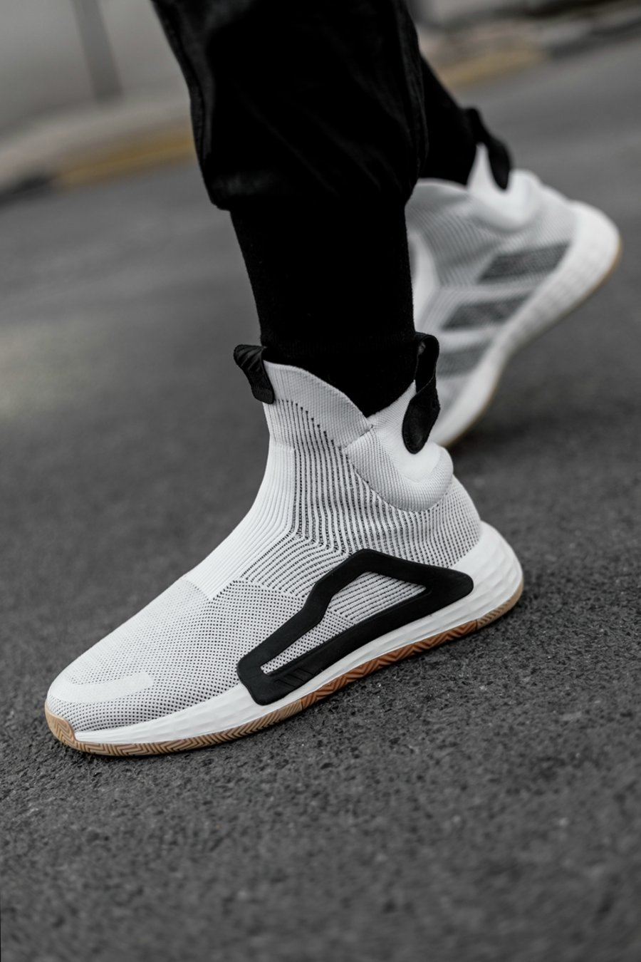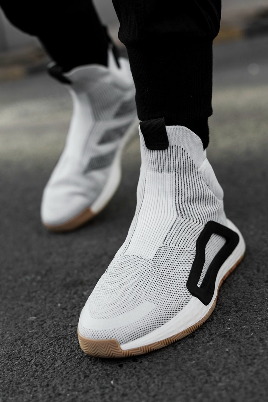 先说颜值方面,秀气的鞋身线条,潮流感十足的高帮袜套,上脚简约又大气,与传统篮球鞋笨重的画风完全不同,非常前卫。