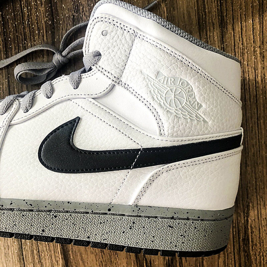 经典白水泥主题再次注入 Air Jordan 1 鞋型之上,本次采用 Mid 中帮造型示人。