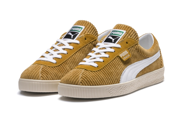 提供一黄一红两种配色,鞋面标志性的 Pmua Logo 和鞋带均以白色妆点。而奶白色的中底,将复古韵味展露无疑。值得一提的是,内衬采用皮革打造,提升舒适性。