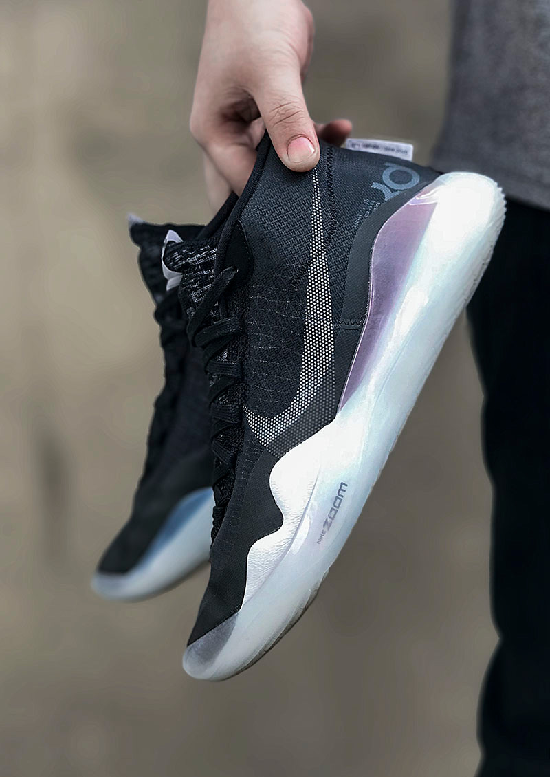 KD12 采用了双层 Zoom Air 气垫的方案,一块全掌的 Zoom Air 气垫搭配一块六边形的后跟 Zoom Air 气垫。