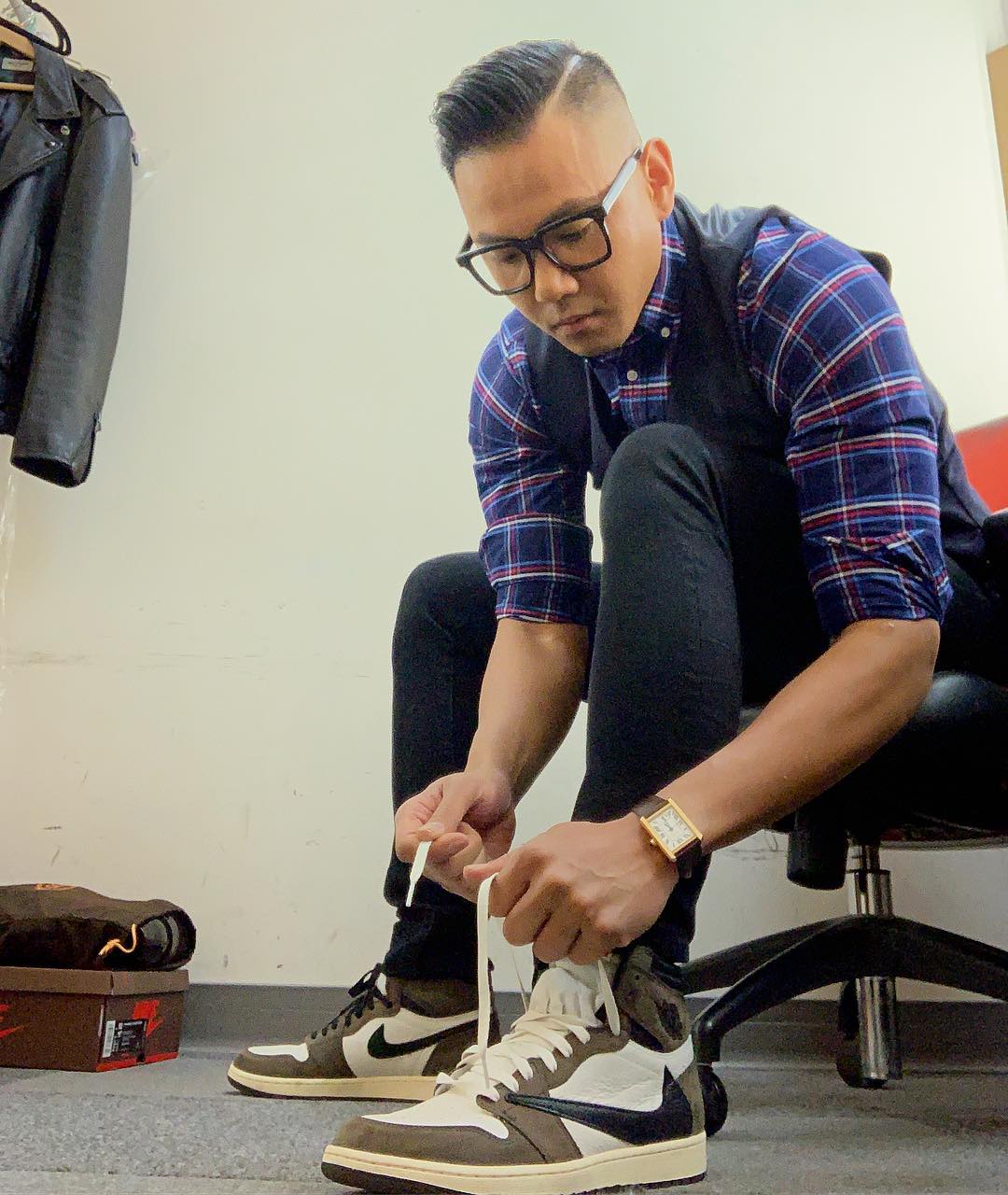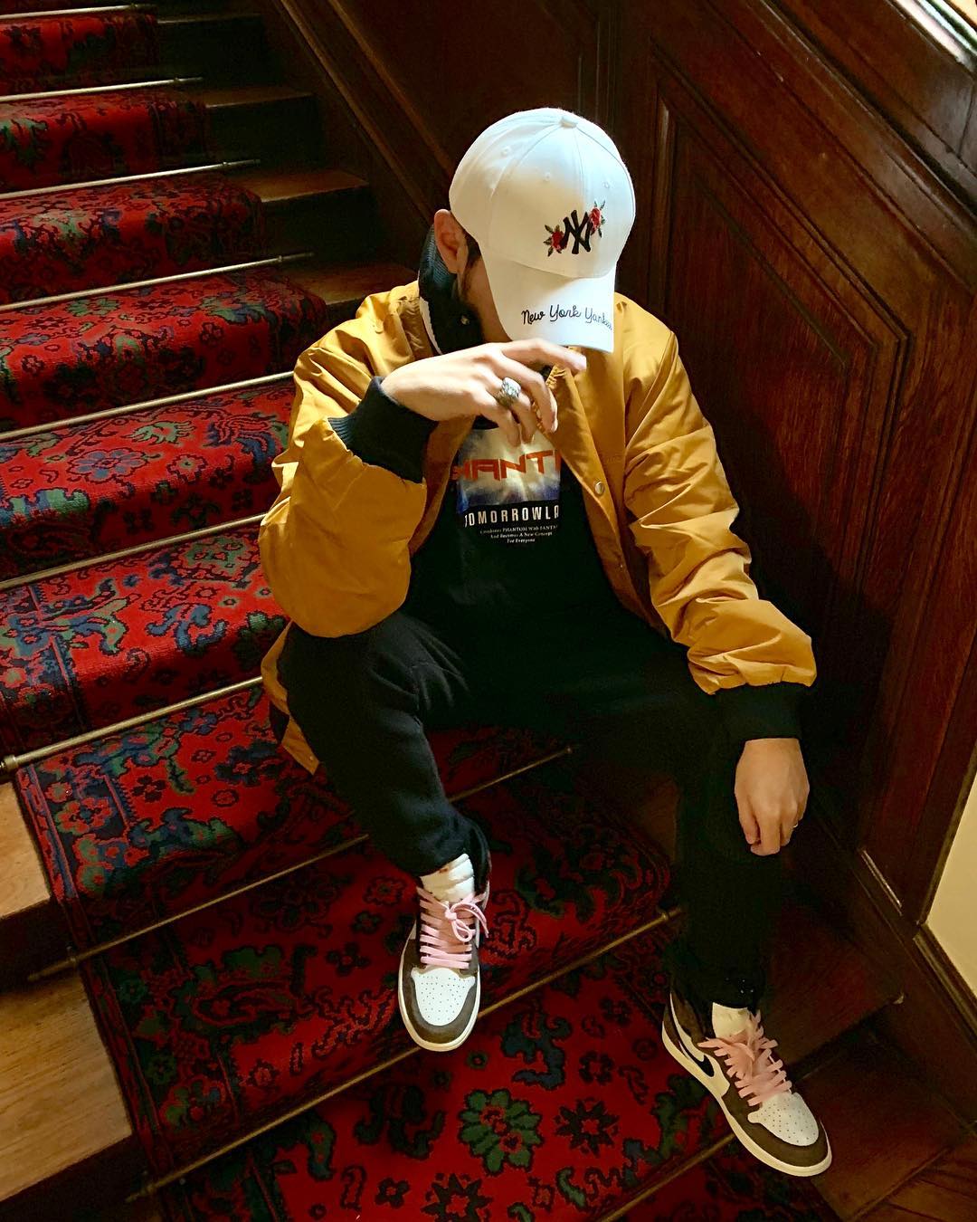 近日三人先后上脚了同一双鞋,就是还未在国内市售的 Travis Scott 反钩联名 Air Jordan 1!