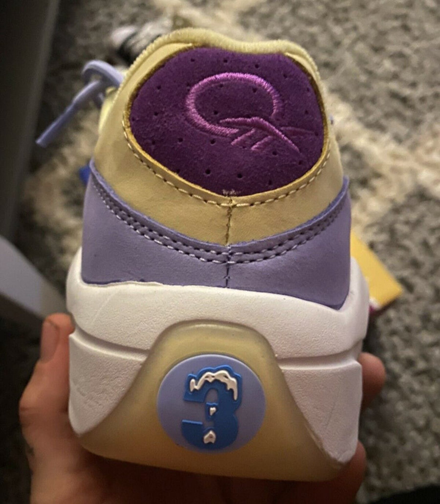 整双鞋在 Question Low 的鞋型基础上,采用黄色、深紫色、浅紫色以及白色呈现出鞋身层次。