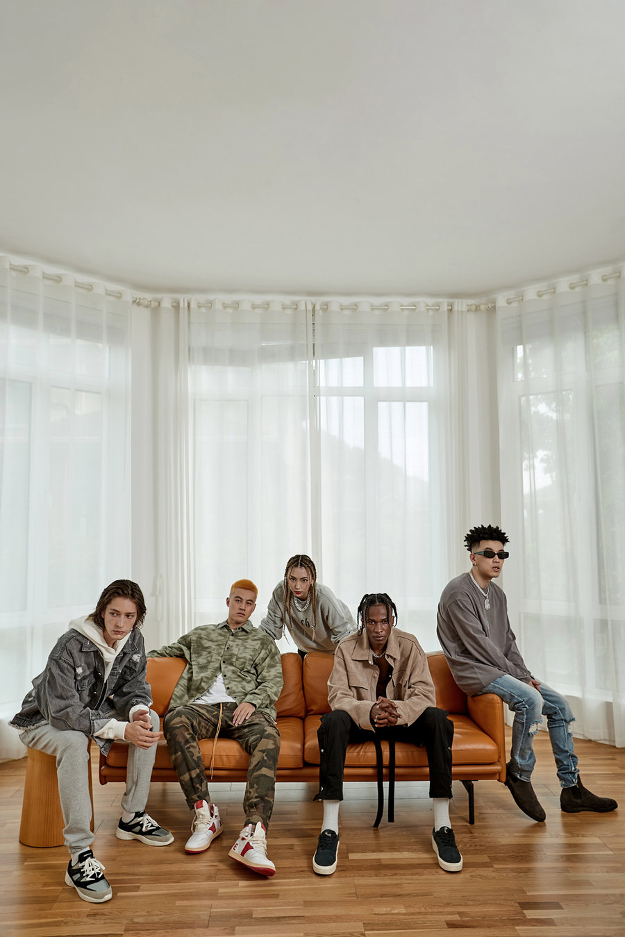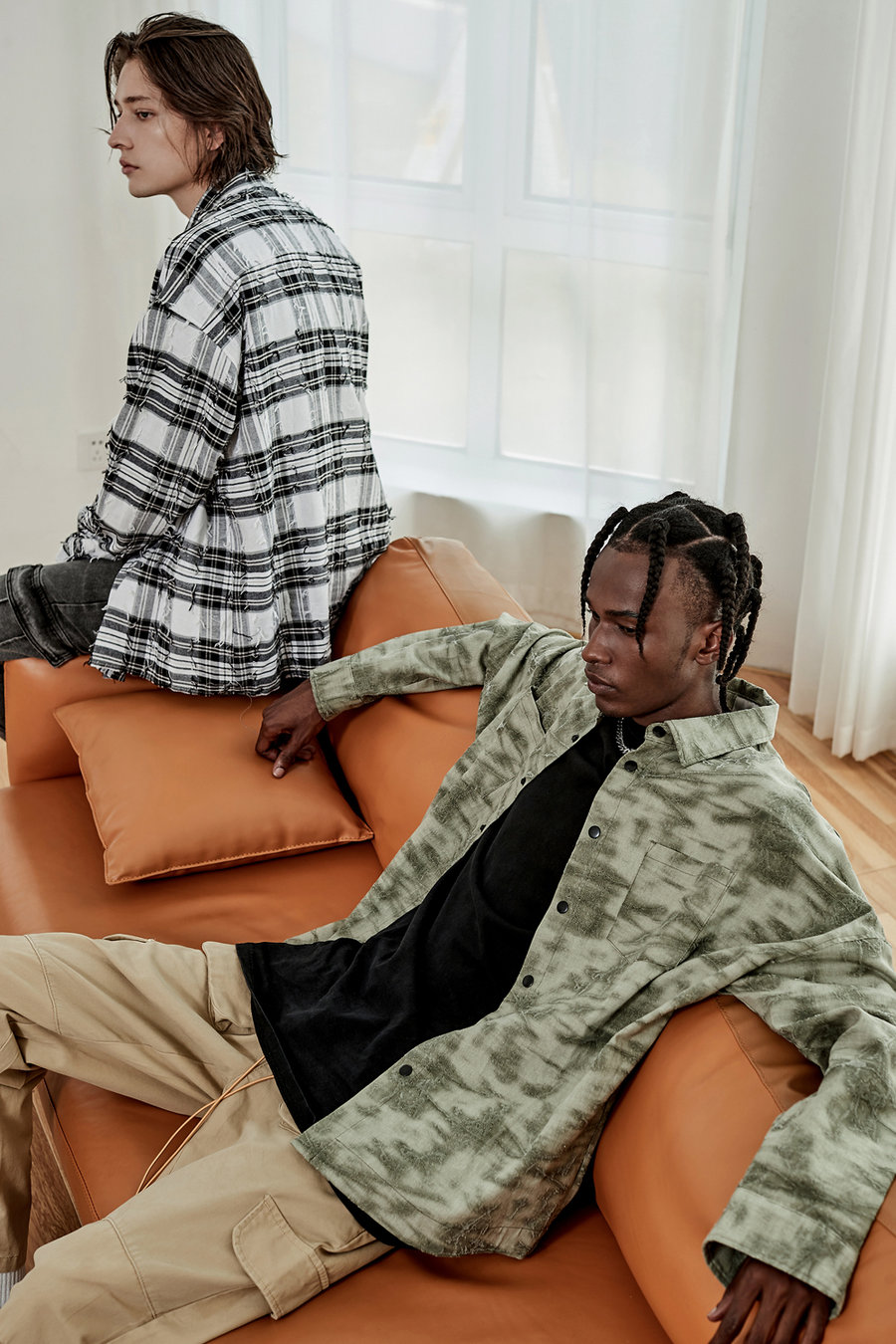 凭借定制重磅面料、特殊水洗工艺、精准剪裁以及皮标、袖标、金属拉链、纽扣等精致细节,使每件单品都具有饱满高级质感。