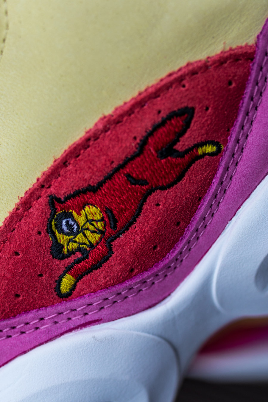 整双鞋以黄、紫双色打造鞋身主体,鞋头与后跟处点缀红色,巧妙地颜色搭配,增加了鞋身层次感。