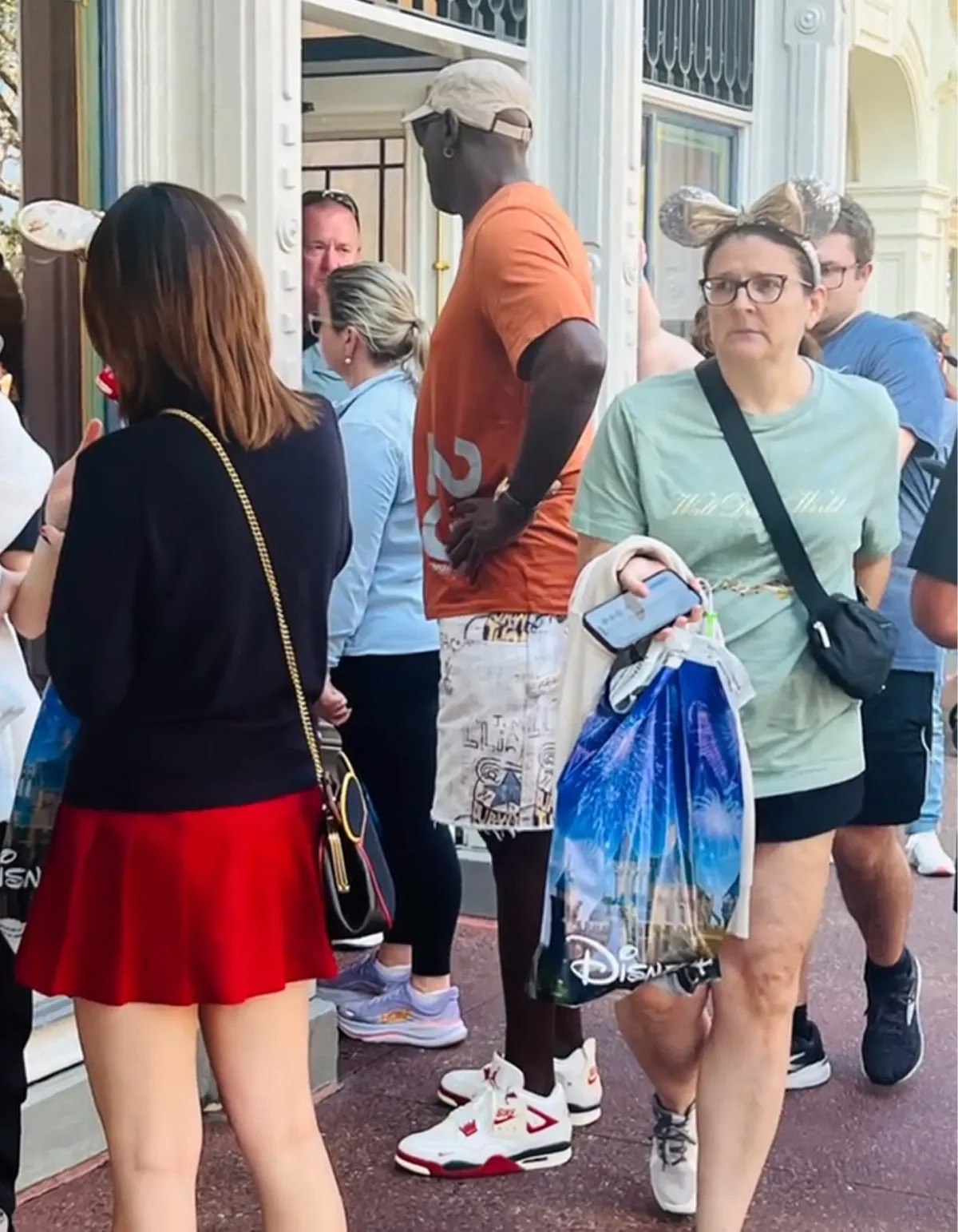 就在今天,Michael Jordan 迈克尔·乔丹本人被拍到在迪士尼游玩时,亲自上脚了这双新配色!