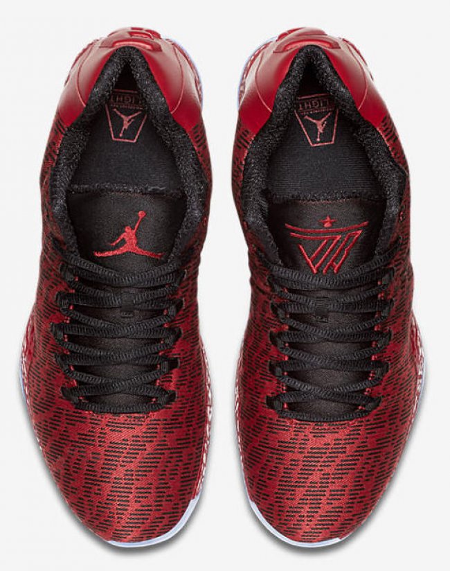 以红色的整体基调注入黑色细节点缀,黑色的鞋舌分别呈现了 Jumpman Logo 和 Jimmy Butler Logo。