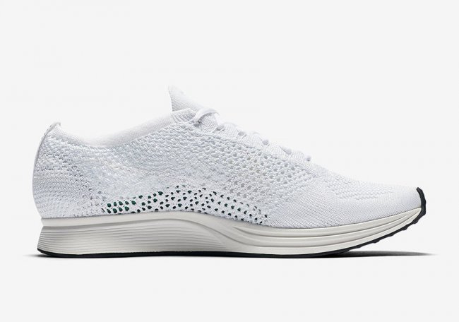 这双名为 Nike Flyknit Racer “Goddess” 从鞋身到鞋底到各项细节都采用了纯白色打造,但通过 Flyknit 的精细编织,鞋身侧边的 Swoosh 依然若隐若现,保留了品牌的经典元素。