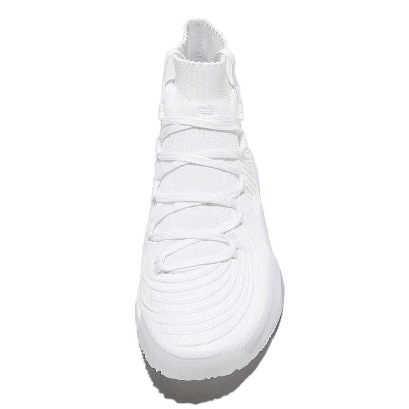 整体造型以一袭纯白装扮贯穿,采用完整 Primeknit 织物构建鞋身,搭配时下流行的弹性袜领设计,水波纹线条营造出满满的战斗气氛!在脚踝四周内置柔软的缓冲材质以提升穿着中的舒适性,最后当然少不了引以为傲的全掌 Boost 和包裹中底的 TPU Cage 能量反馈鞋笼。