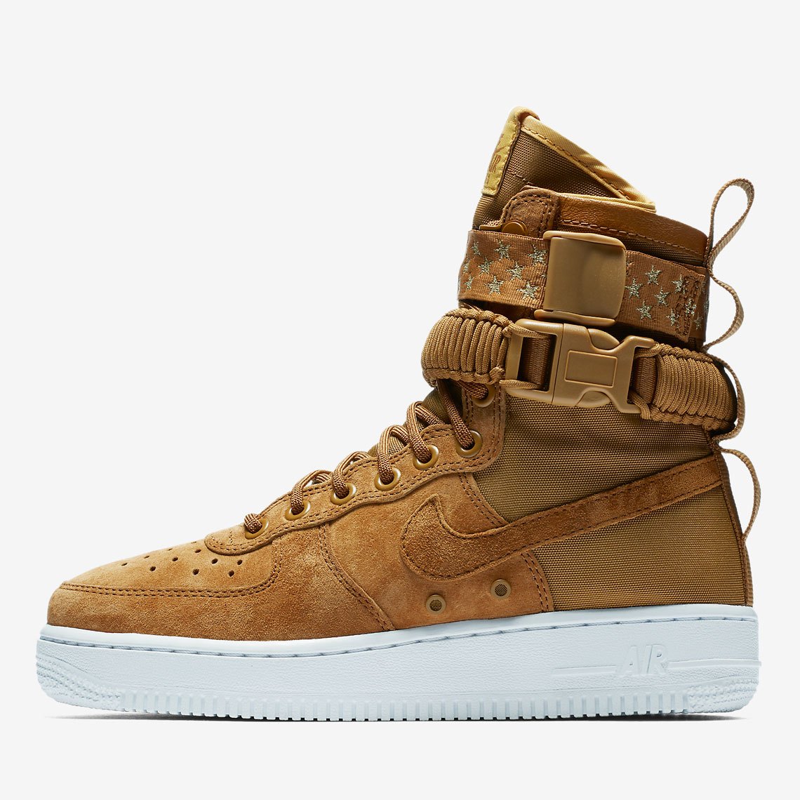 近日 Nike 就对外公布了两款全新配色的 Nike SF-AF1,分别以秋冬季最为合适的酒红以及小麦配色,同样搭配白色中底,材质的选择上依旧是尼龙搭配翻毛皮。细节处的亮点在于 SF-AF1 特有的双绑带中有一条绑带会以刺绣形式布满星星图案。