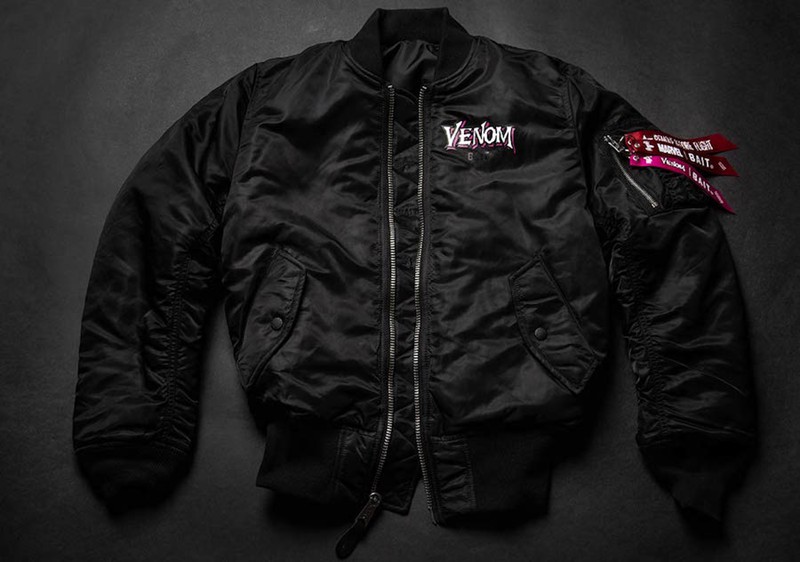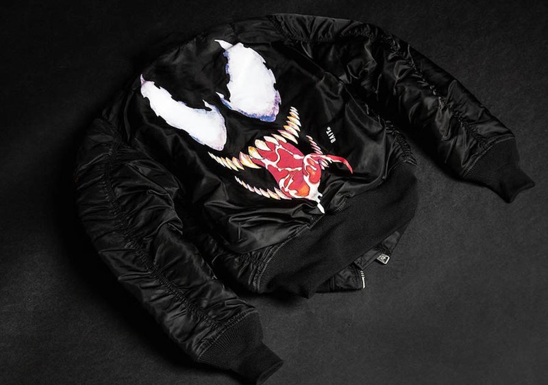 同时配套的还有联手 Alpha Industries 带来的四方联名 MA-1 飞行夹克!超大面积的黑蜘蛛背画以及毒液头像,如此酷炫的装备想必即便不是漫威粉丝也被深深的种草了!