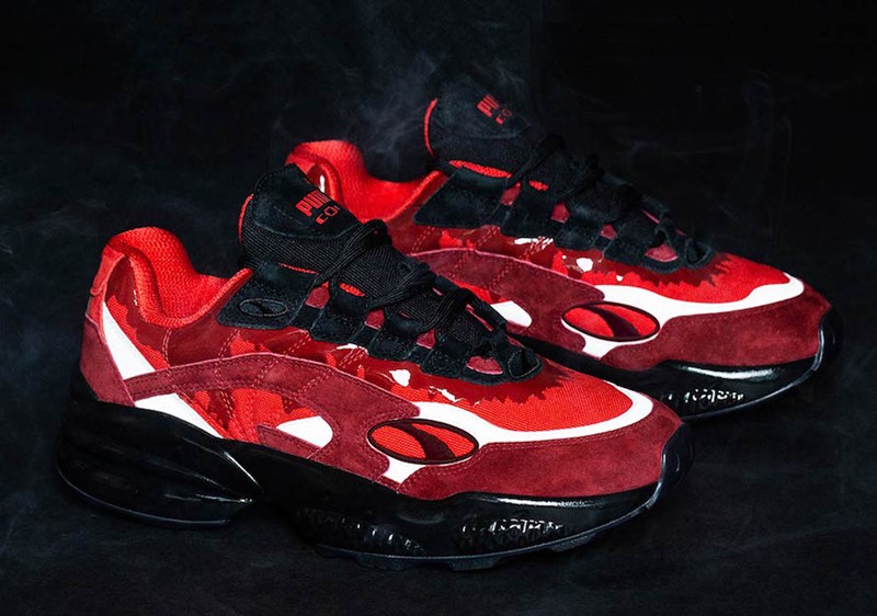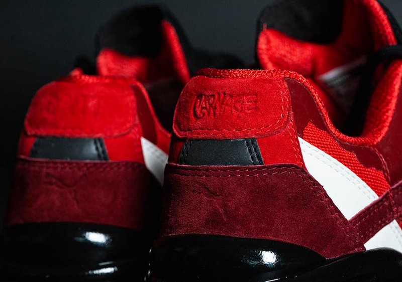 另外一双 PUMA Cell “Carnage” 鞋款是以毒液的意外衍生物红色共生体为对象设计打造,血一般的红色鞋身带有溅射状的装饰,搭配黑色与白色,将该反派角色的疯狂表现得淋漓尽致!