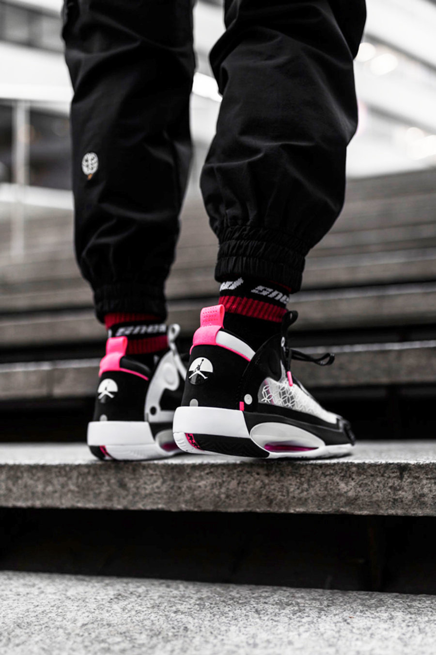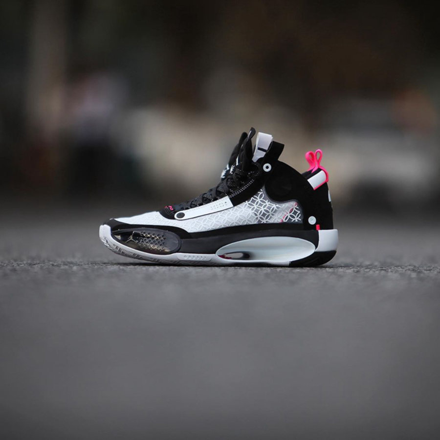 Air Jordan 34 CNY 以简洁的黑白两色呈现鞋身主体,细节处恰到好处的点缀亮粉色。