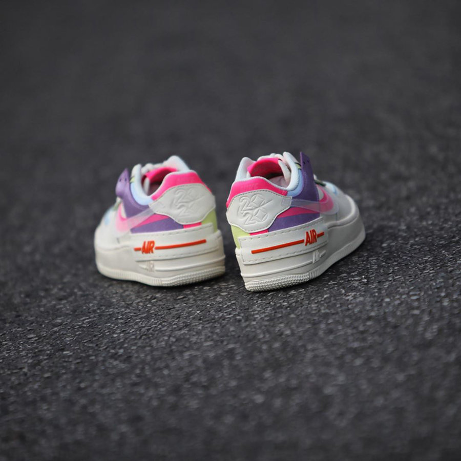 鞋身注入蓝色、粉色、绿色、紫色以及橘色,为整双鞋呈现出彩蛋一般的视觉效果。侧身阴影 Swoosh Logo 设计,更是呈现出独特的立体效果。