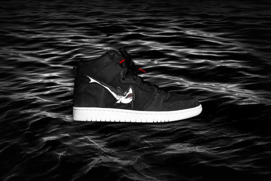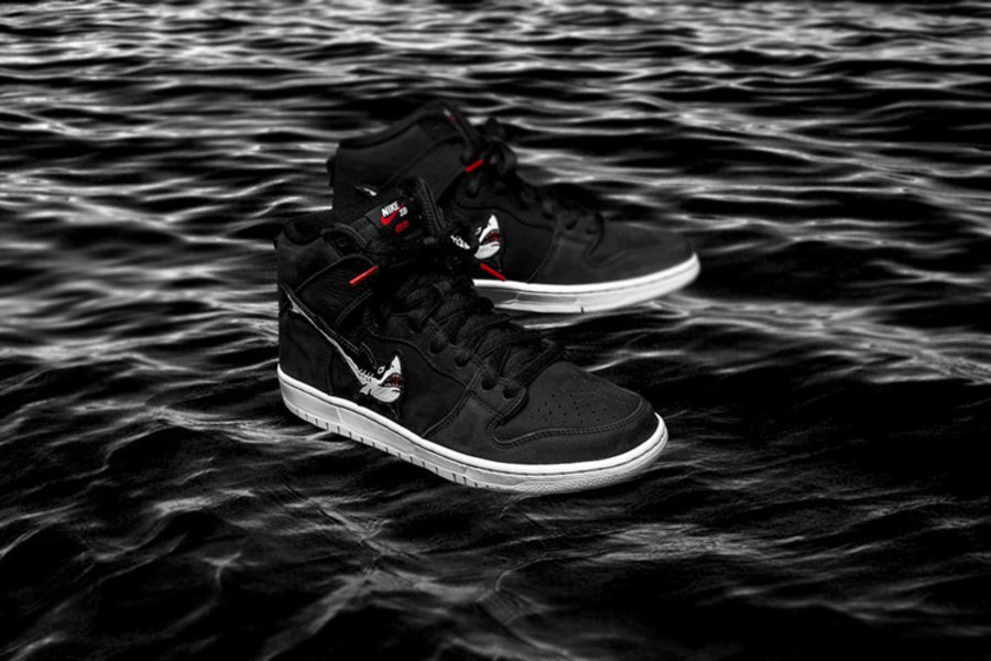 最令人印象深刻的是,鞋身以大白鲨图案改造成 Swoosh,带来了钩子的新玩法,创意脑洞值得玩味。