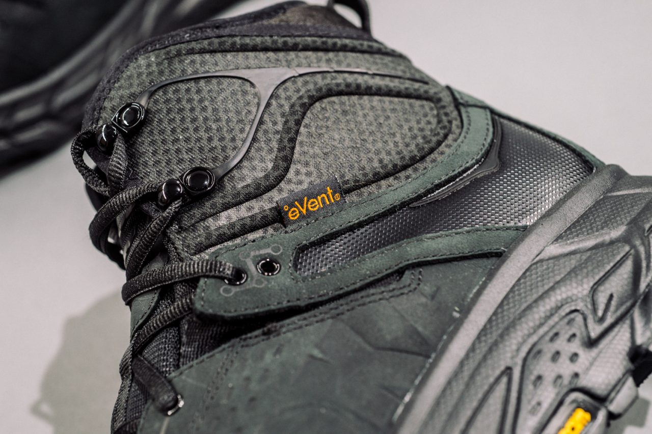 在科技方面,HOKA ONE ONE KAHA 采用了享誉全球的超防滑 Vibram® 外底,以及自家独占的 eVent® 防水内靴。
