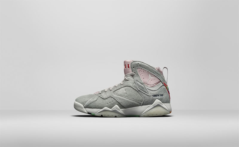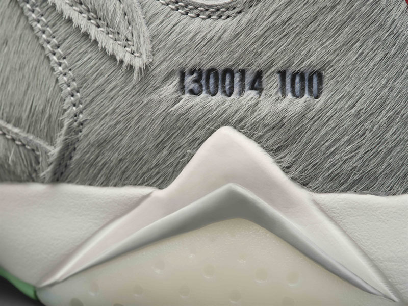 这双 Air Jordan 7 算是今年颇具特色的一双新鞋,淡淡的浅绿色鞋身采用人造马毛材质覆盖,形象生动的还原出兔八哥毛茸茸的形象,鞋舌及鞋帮等部位的粉色点缀,清爽中透出可爱气息。