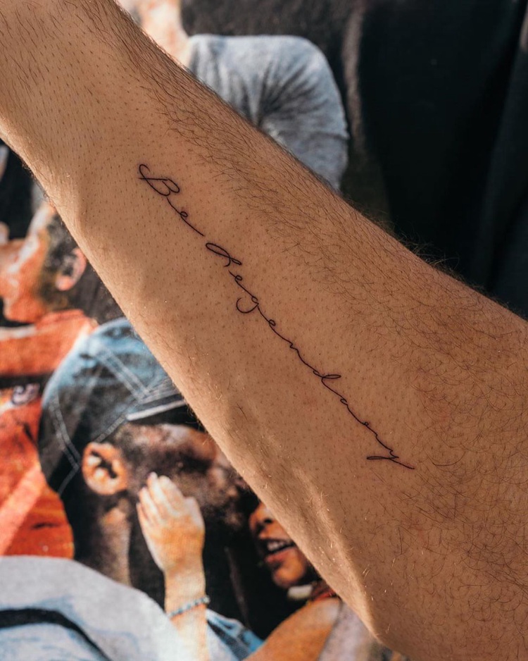 为缅怀科比不幸罹难,更将曾经科比对他鼓励的话语纹在身上,以表怀念。