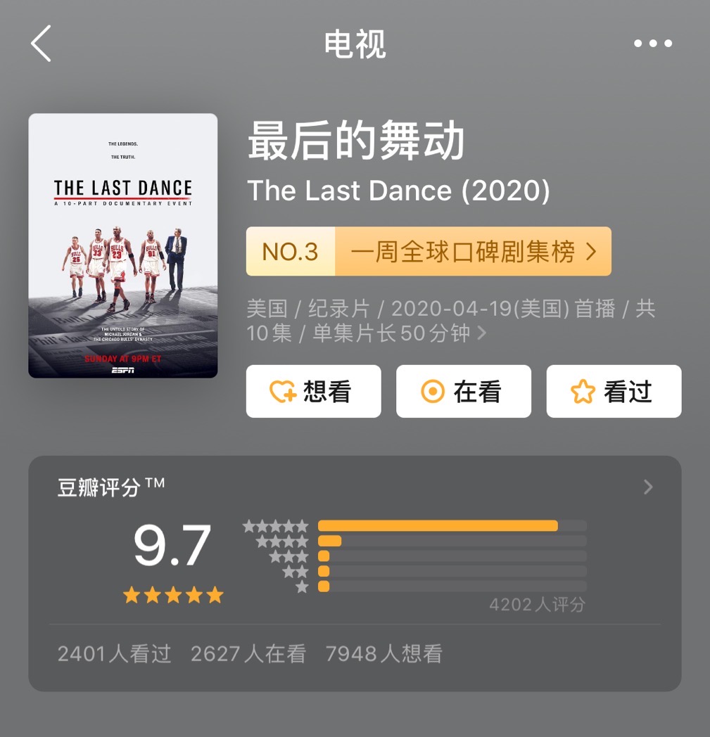 目前这部纪录片已经放出 4 集,豆瓣评分 9.7。
