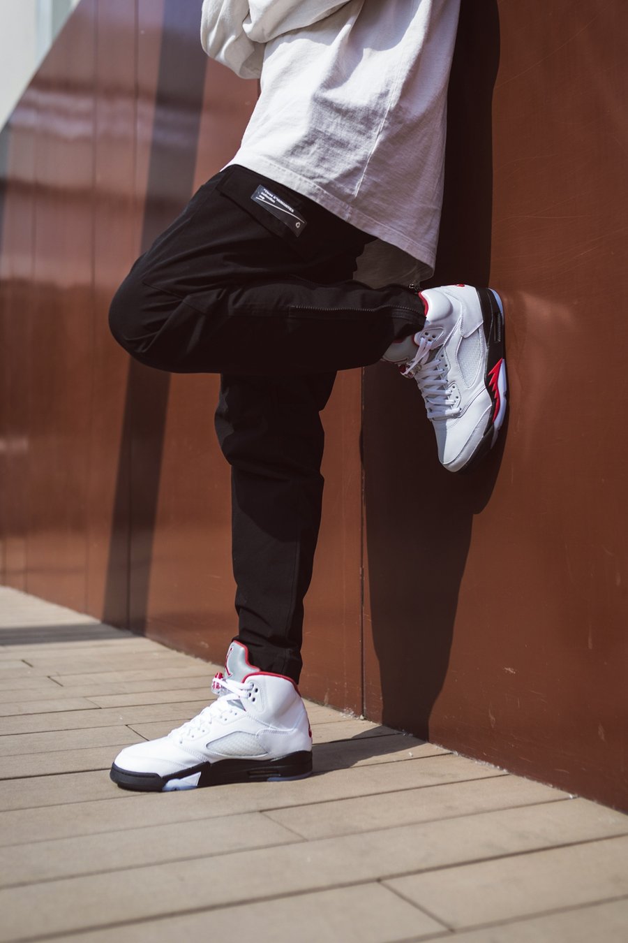 白色球鞋本来就百搭,加上 Air Jordan 5 有着帅气硬朗的外观,能让你轻松驾驭各种风格的穿搭。