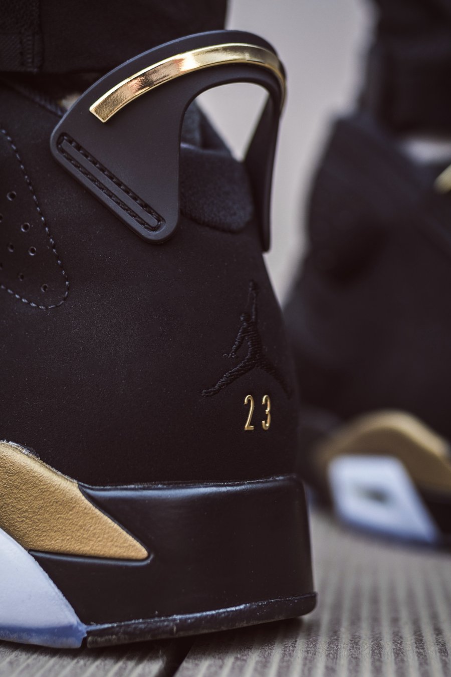 后跟飞人刺绣与金色的 23 组合,也是这双鞋与其他 Air Jordan 6 最大的区别之一,细节中体现高级独特。