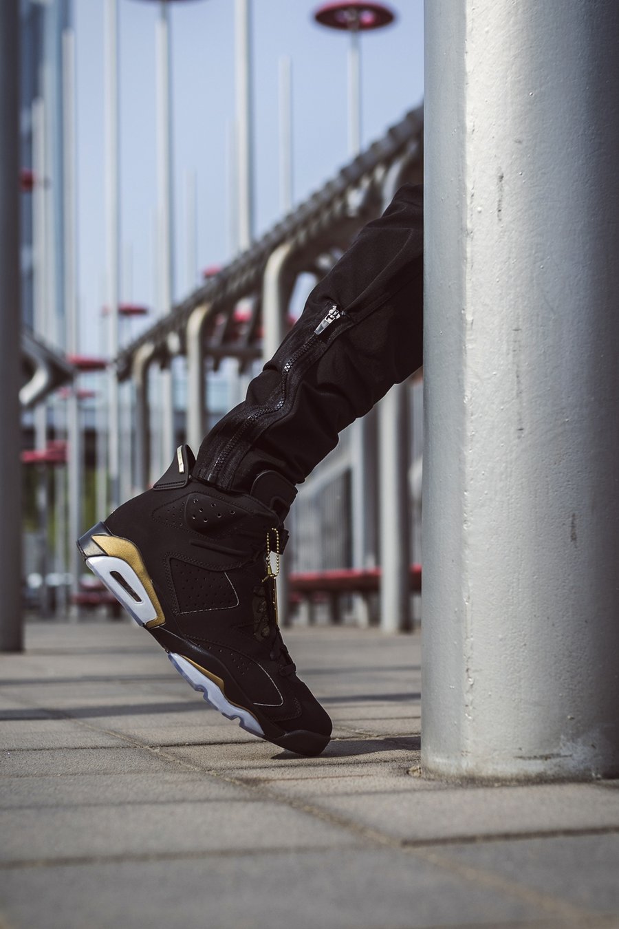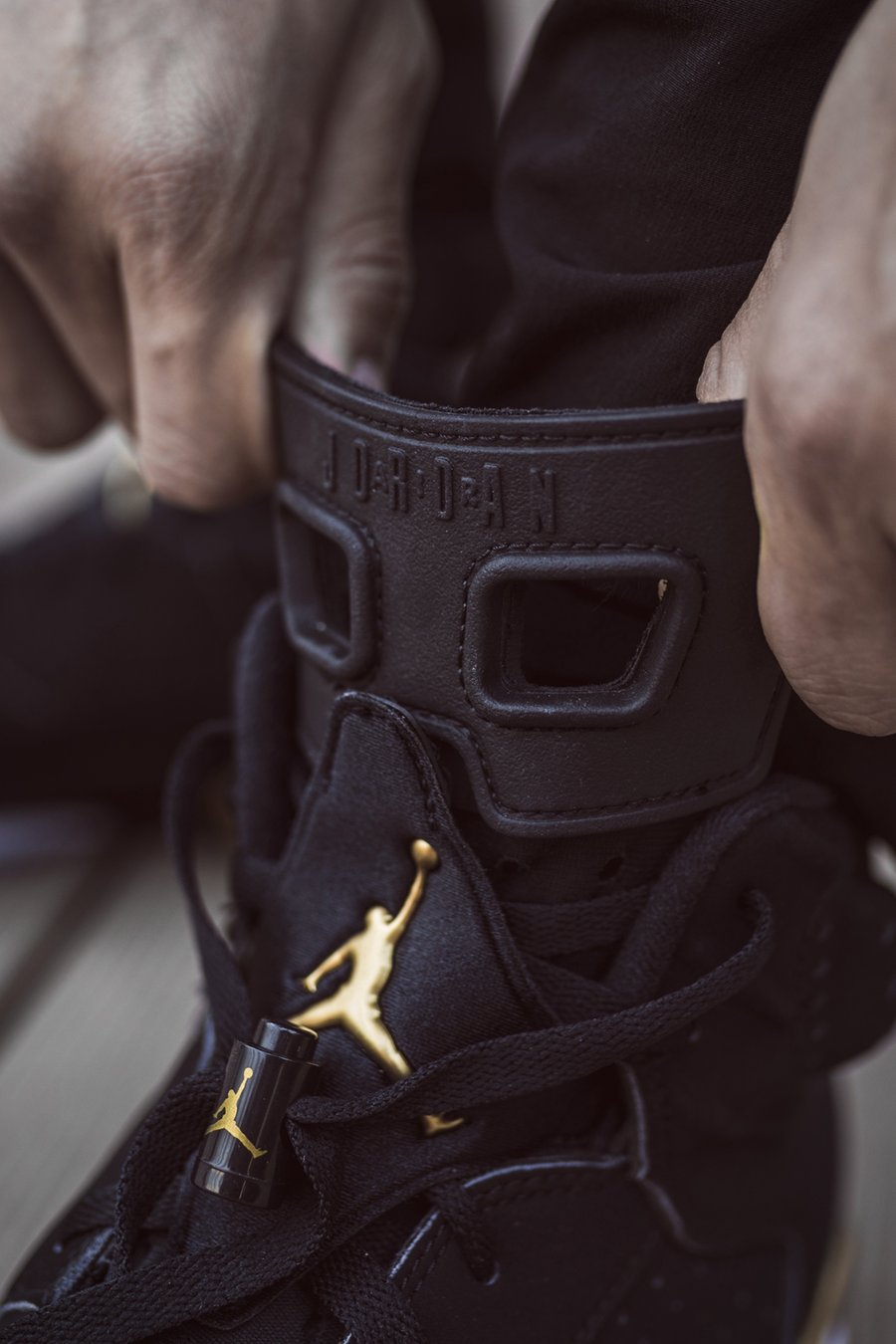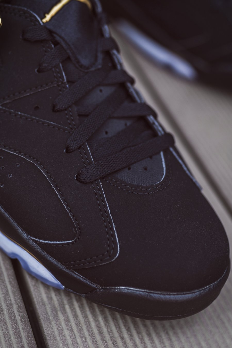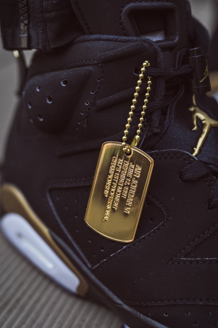 首发于 2006 年的黑金 Air Jordan 6,当年与 Air Jordan 11 组成 Defining Moments Pack (DMP) 套装,以此纪念迈克尔·乔丹两次三连冠的壮举。