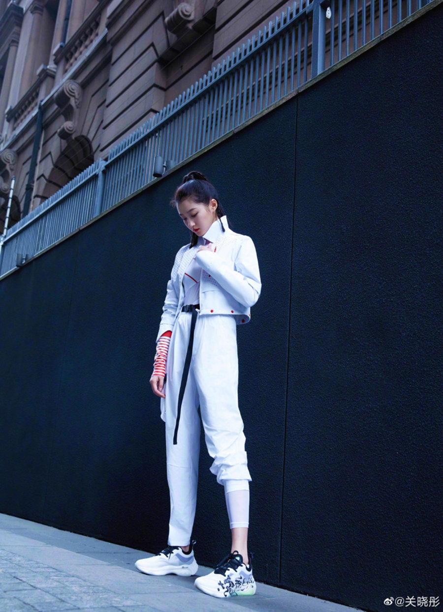 而关晓彤最新上脚的这双安踏,采用水墨风格覆盖鞋身,极具中国特色,搭配白色运动风服装,绝对活力十足!