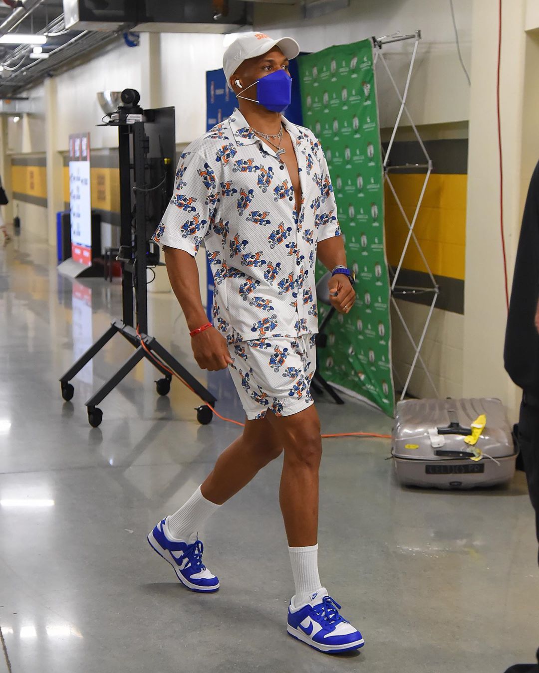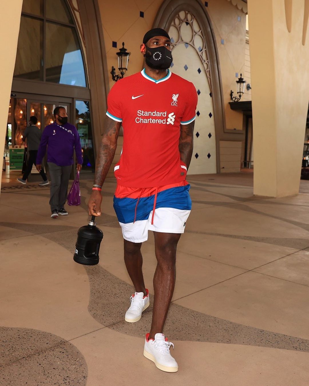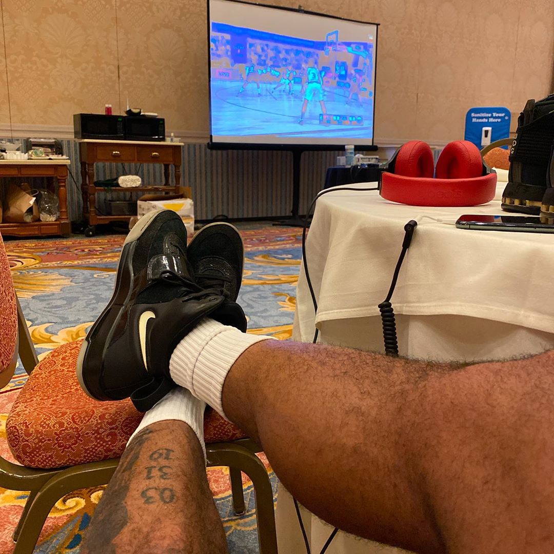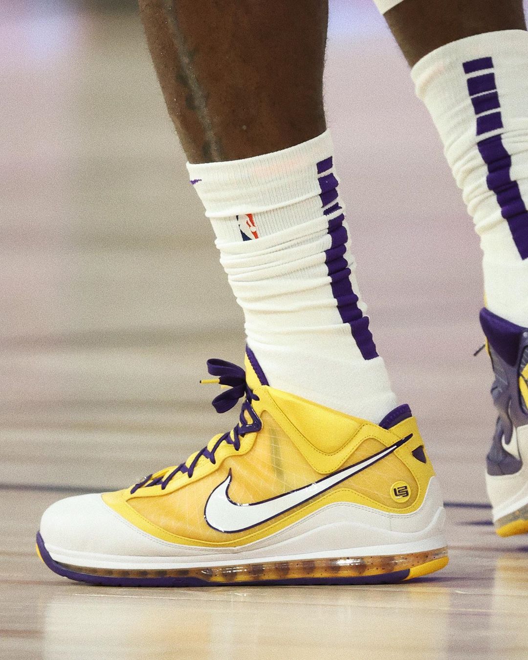 詹姆斯则又穿上了去年媒体日上脚的 LeBron 7,与刚刚发售的 KITH x Air Force 1,同样十分抢眼。