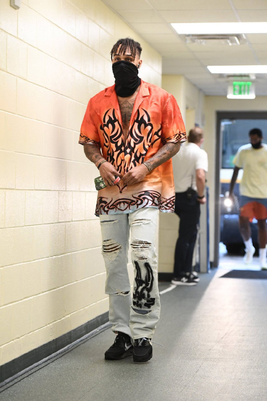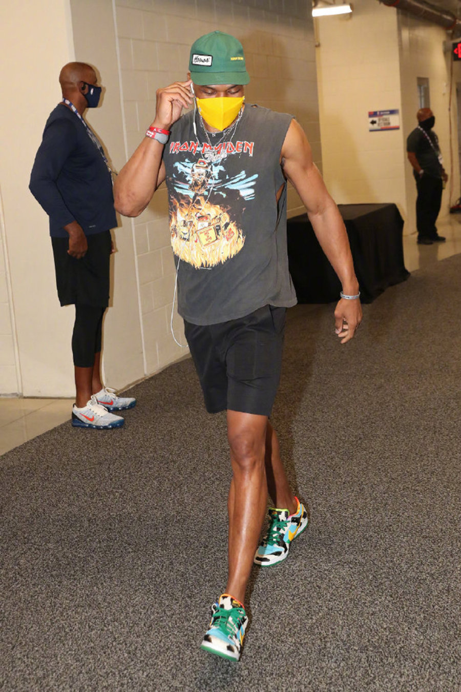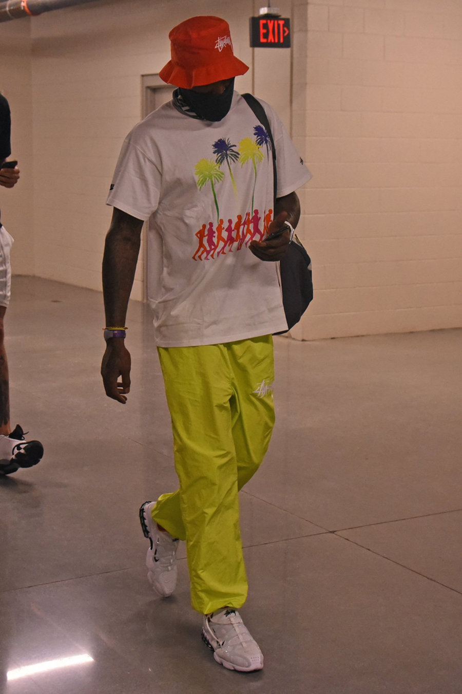 除了激烈的赛事,球星脚下的鞋款也是大家关注的重点!詹姆斯、戴维斯等球员的进场照更被称为超模走秀!