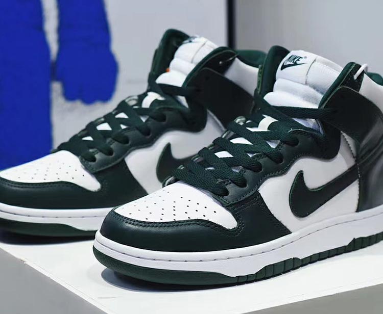 时隔十二年,Virgil 最爱的元年白绿 Nike Dunk High 终于迎来复刻。配色依旧是熟悉的白绿主题,只是绿色更深更像是墨绿色,传统的皮质鞋面彰显 OG 气质。