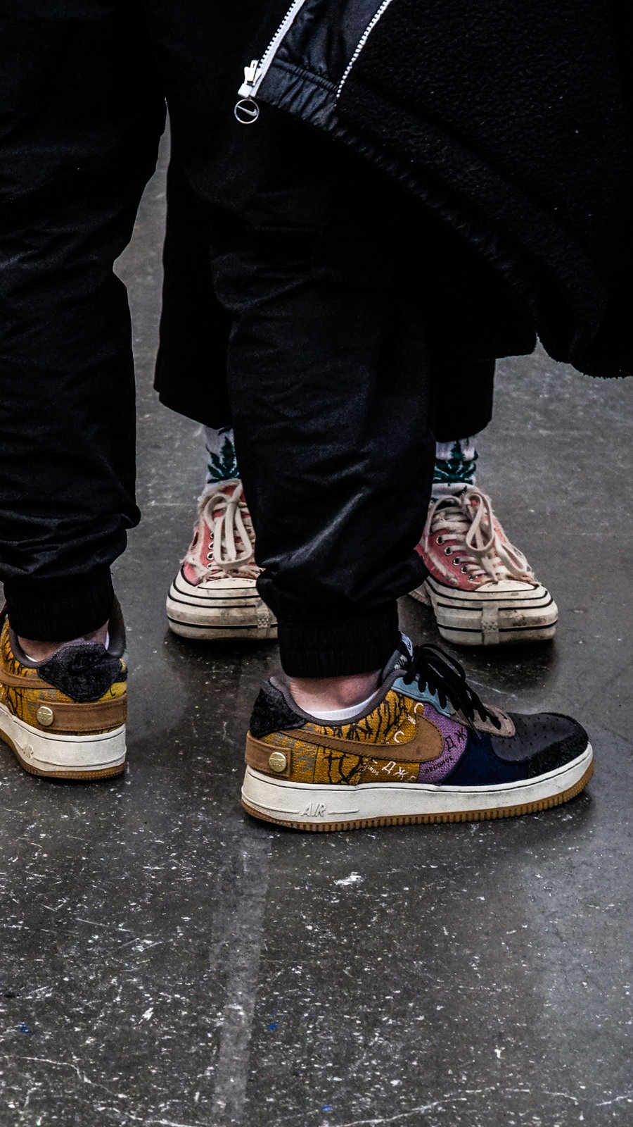 说回球鞋,现场玩家都把自己压箱底的宝贝穿出来了,Travis Scott、Sacai 等各路联名目不暇接,甚至还有稀有 PE 等神物。