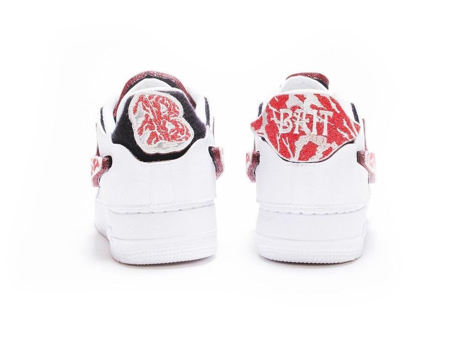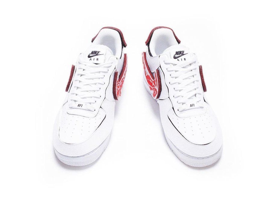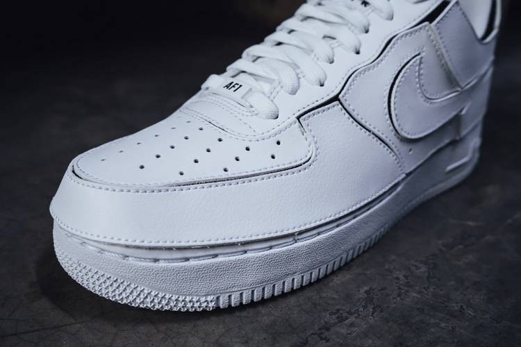 乍看之下,这就是一双普通的纯白 Air Force 1,但仔细一看就能发现,鞋面并非拼接缝合,而是以魔术贴组成。下方则是黑色黑色底板。