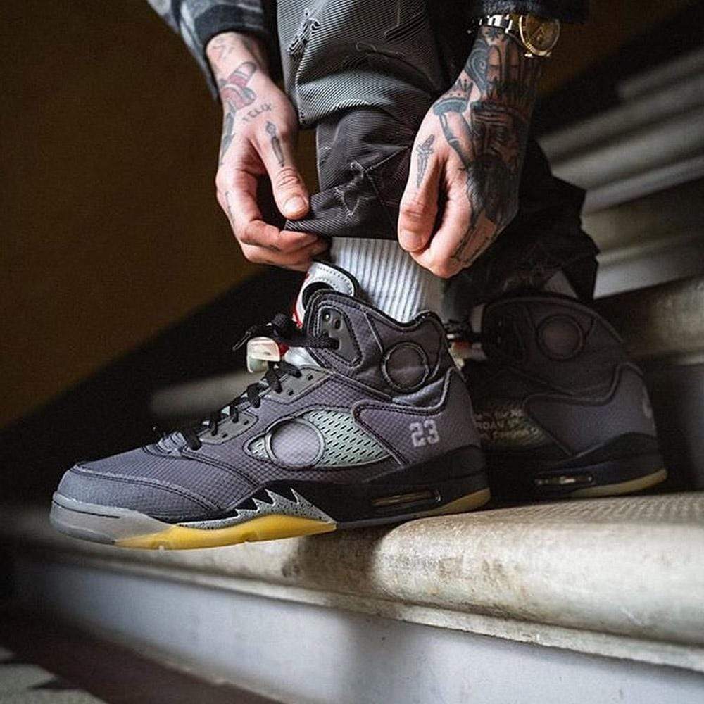 去年 OFF-WHITE x Nike 的几双联名球鞋属实拉胯,这双 OFF-WHITE x Air Jordan 5 就像是翻身之作,为 OFF-WHITE 成功找回场子。