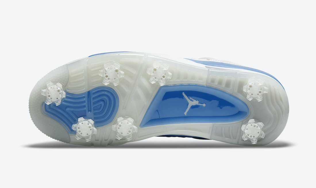 最大区别在于外底改为了白色半透明水晶外底,同时还有高尔夫鞋必备的鞋钉。