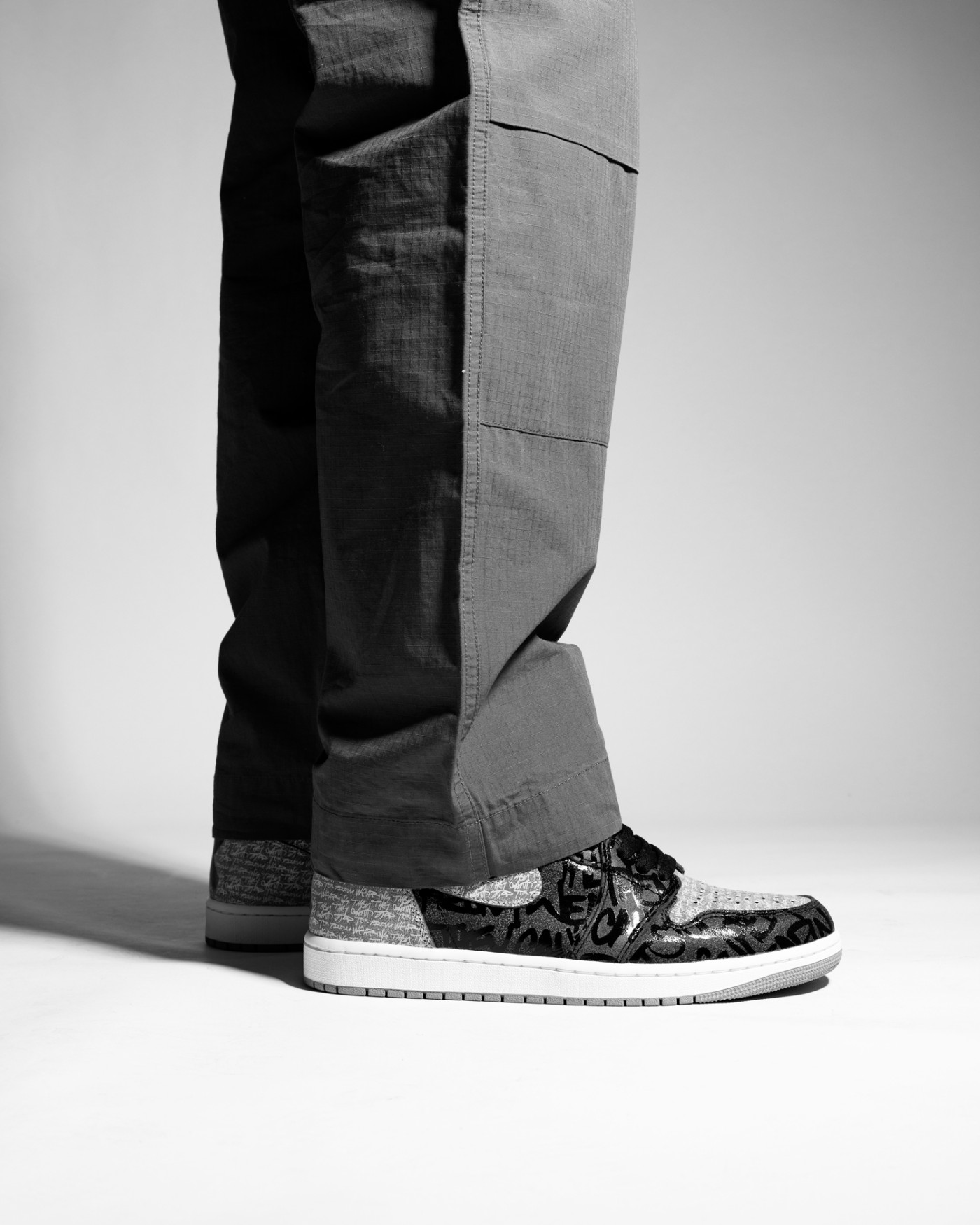 考虑到 Air Jordan 1 的百搭属性,小编又换了一条阔腿工装裤进行搭配。